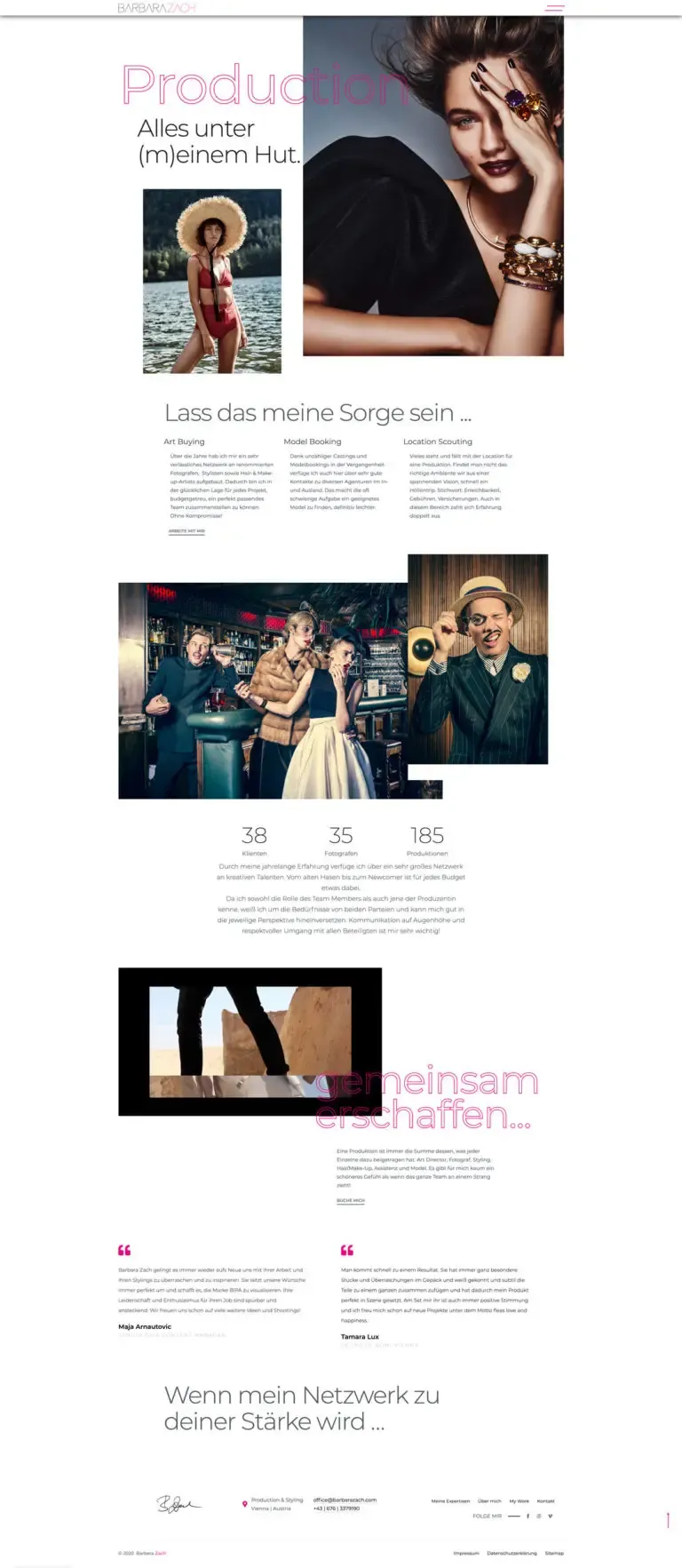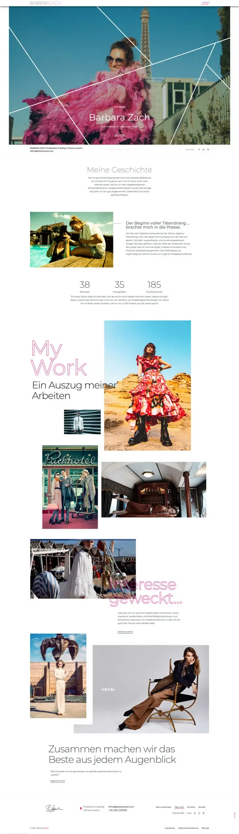 Redesign des Webauftritts für eine angesagte Fashion-Stylistin mit umfangreichen Produktionsportfolio. Ziel war es alle Facetten ihres Schaffens stilgerecht hervorzuheben und ihre Arbeit und ihre Persönlichkeit zu unterstreichen.