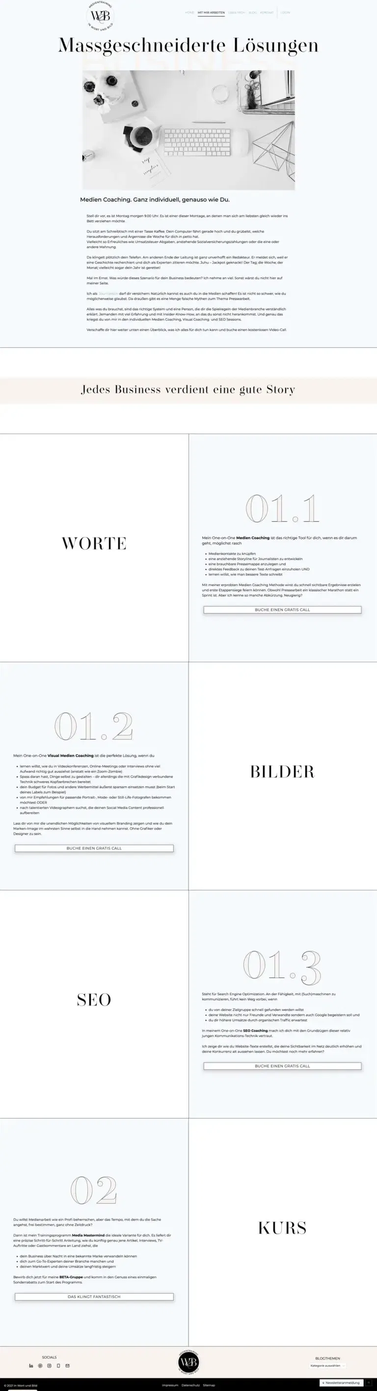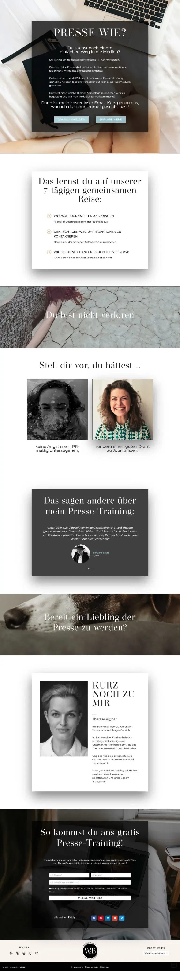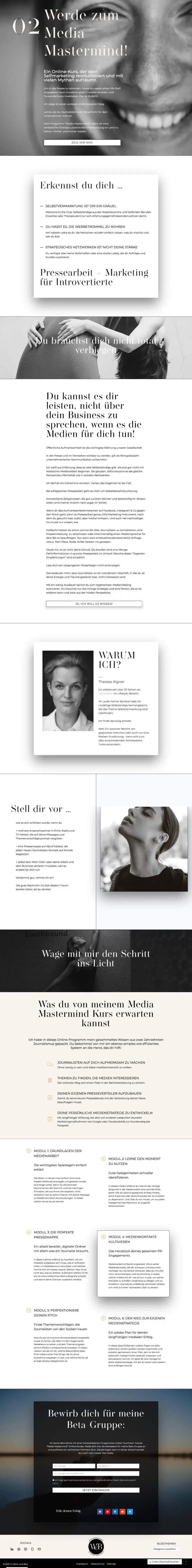 Redesign des Webauftritts für eine Journalistin mit Schwerpunkt Medienpräsenz, Coaching und Pressetraining. In weiterer Folge mit eigens erstellter Kursplattform.